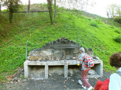 la parte restaurata in sasso con la fontana