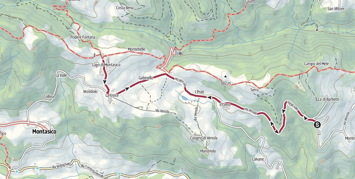 DI VENOLA – VIA VENOLA FINO A LAGO DI MONTASICO E RITORNO 6 Km DISL. 150 m