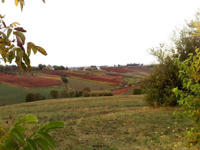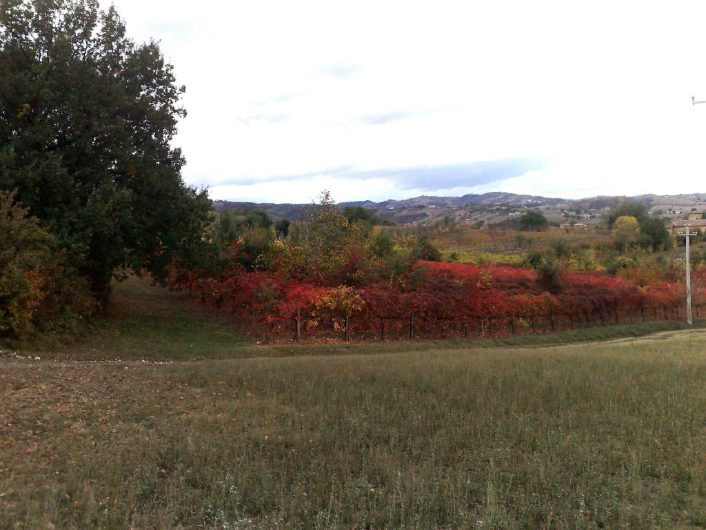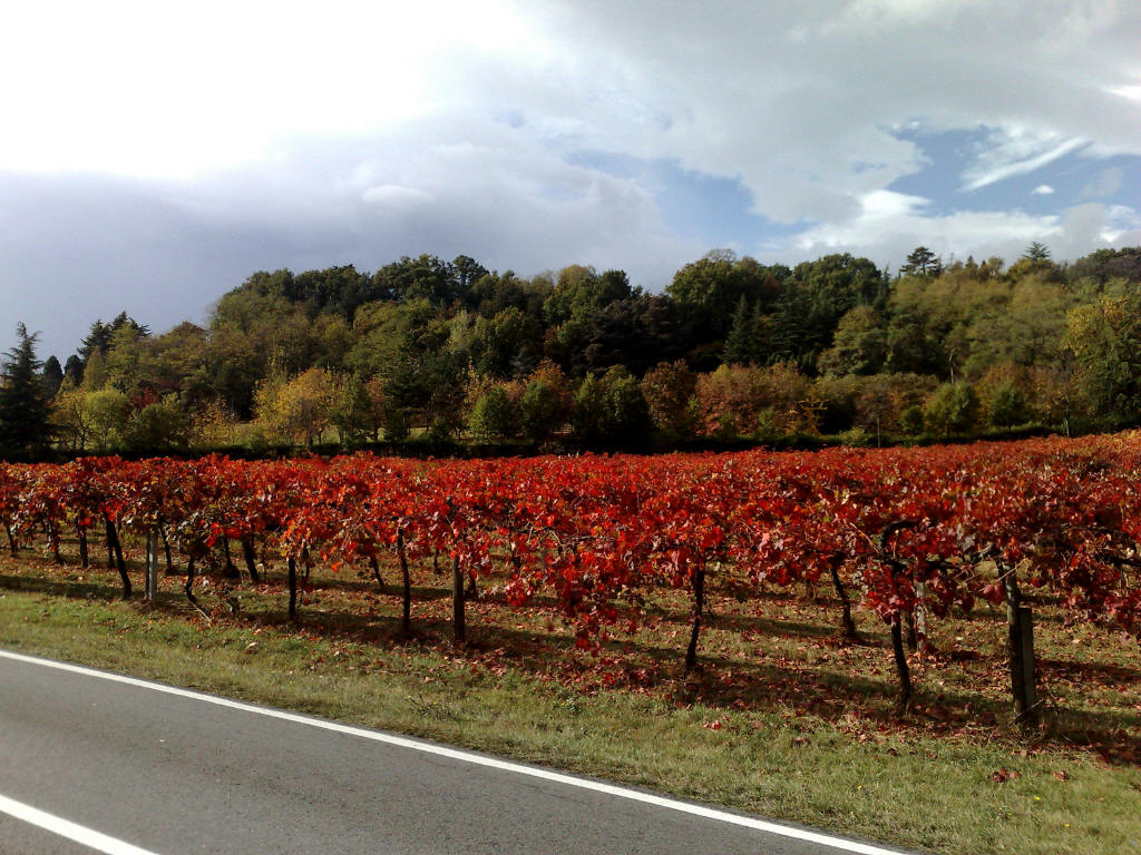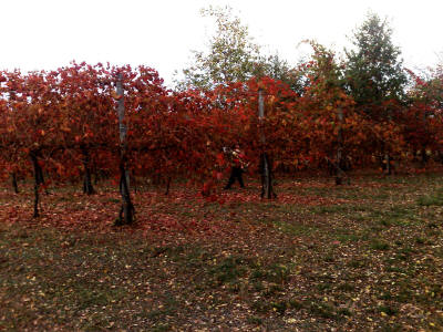 capo di ogni filare. In qualche punto le foglie si sono diradate, e disegnano un
