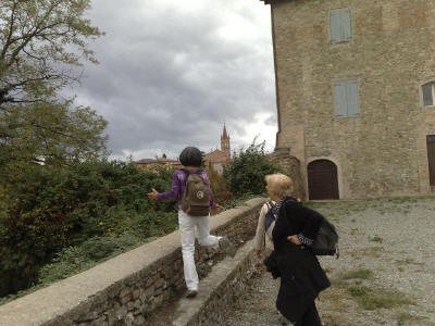 arriviamo a Castevetro. Appena scendiamo dalla macchina comincia a piovere,