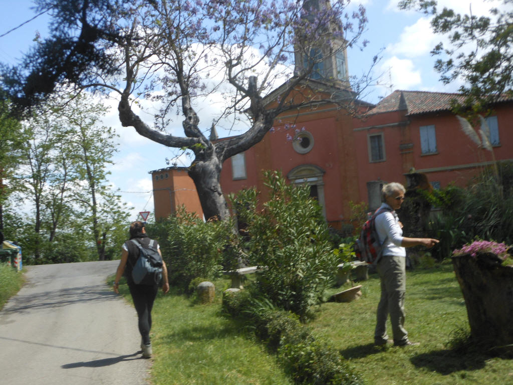 alla chiesa, di fronte a un albero bellissimo di pavlova, coi suoi fiori lilla a
