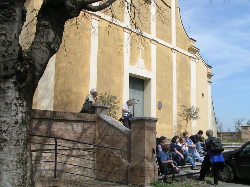 Arriviamo alla Pieve di Vignola dove, in un ampio spazio di lato alla chiesa,